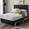 Suitable for both master bedrooms and stylish spare rooms, this versatile bed frame effortlessly suits any living space. Given the slimline design and neat aesthetics, getting into or out of the bed is a breeze. The inclusion of solid slats as standard optimises airflow, keeping your mattress fresh. Though for an upgrade, the sprung slats can offer better shock absorption and cushioned support, offering a truly superior sleep experience.
